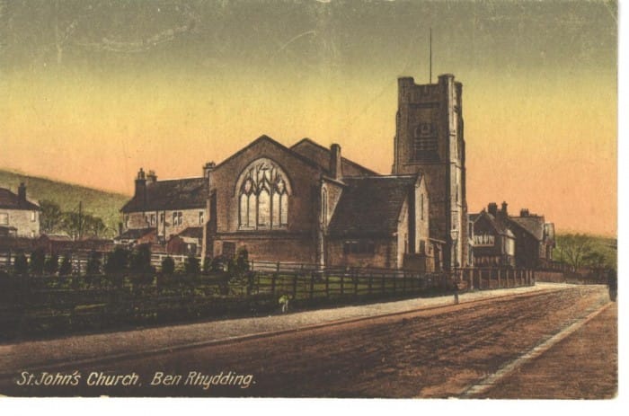 Regular Church services began in the community of Ben Rhydding in 1901 and the need for a place of worship centred in Ben Rhydding grew. Plans for the Church were drawn up by Architects Chorley, Connon and Chorley of Leeds in July 1903. On 21st October 1903, land of approximately 2,600 square yards (2,174 square metres), formerly a cricket field, was purchased at a cost of £650 on which to build a Church. In December 1904, after appropriate fund raising, a start was made on the erection of the nave and chancel.The Church was formally opened with the laying of the foundation stone, at the west end, by Mr Walter Walker of Ben Rhydding on Saturday 14th October 1905. It was consecrated by the Lord Bishop of Ripon on Saturday 16th December 1905: "Set apart and separate from all common and profane uses whatsover, and dedicated solemnly to the service of Almighty God as a place of Divine Worship forever." Gradually over the next few years the Church was extended being effectively completed by July 27th 1910 when the west end of the nave and the tower were dedicated by the Bishop of Ripon. On 24th June 1912 the separate parish of Ben Rhydding was created which St Johns has been ministering to ever since. Over 800 people attended the induction service of Reverend Walter Bradley into the new parish of St John the Evangelist (St John's) in November 1912. When you visit the Church you will see are a number of items of local significance with interesting stories which include:- Do come and visit our Church, there is much to see and experience the presence of God. Below are some photos of our Church from its early days through to more recently. |
